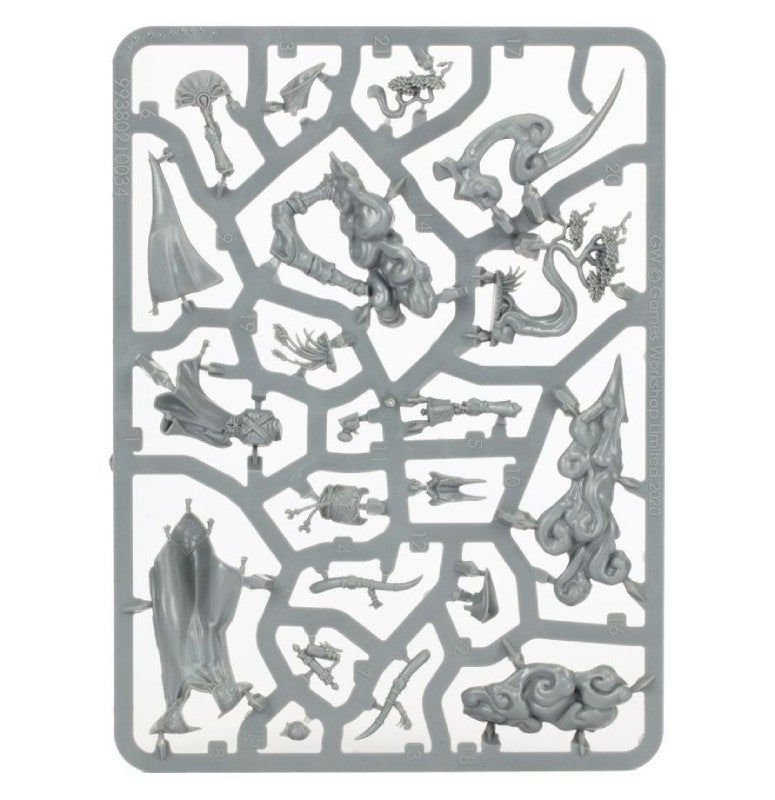 This kit consists of 250 plastic components and includes 1 Citadel round base (60 mm), 3 Citadel flight stand slots (45 mm), 6 Citadel oval bases (60 mm x 35 mm), and 10 Citadel round bases (32 mm). These miniatures require assembly and are unpainted—we recommend using Citadel plastic glue and Citadel Colour paints.